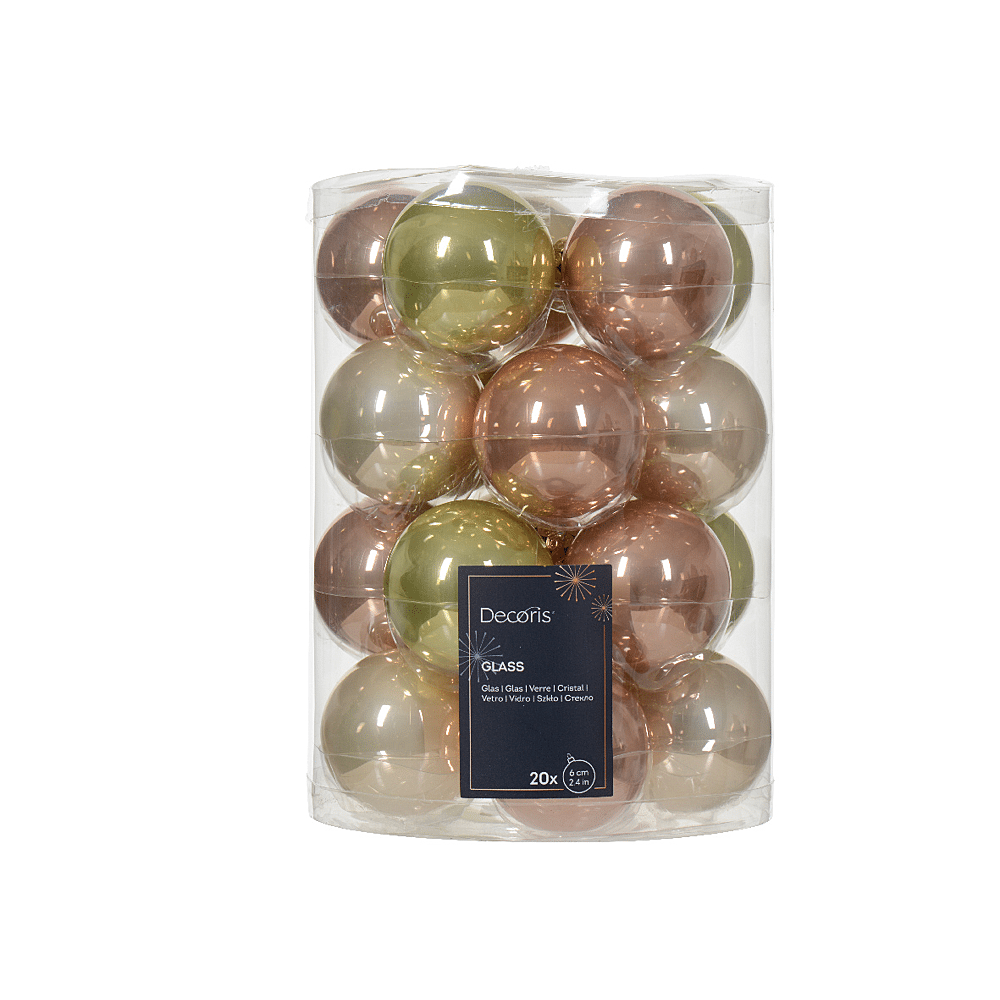 Boule De Noël Perle-Pistache-Rose Pétillant Verre Brillant Et Mat Ø 6cm 20 Pièces