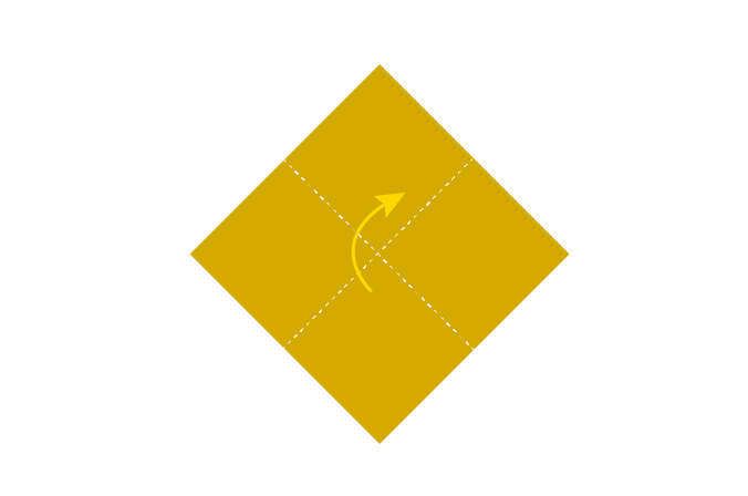 Déposez la serviette unie ouverte, un coin vers le haut, et pliez la moitié inférieure vers le haut, pour obtenir un triangle.
