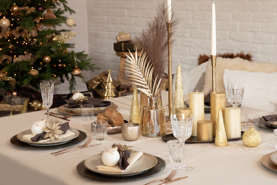 Les formes abstraites et pures de la tendance Starry Night font de votre maison un ensemble épuré et élégant avec une touche de mystique. Les couleurs principales, l’or, le noir et le blanc, soignent l’aspect élégant de la tendance de Noël, tandis que les chandeliers, les vases et la décoration soulignent le raffinement.