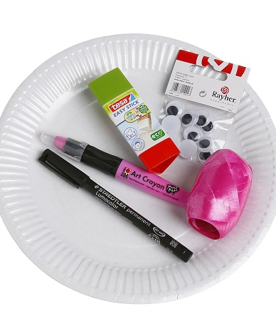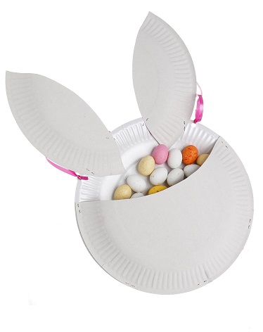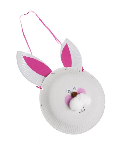 - Dessinez avec des marqueurs roses et noirs un museau de lapin au dos d'une grande assiette en carton.