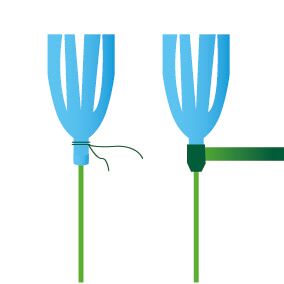 Breng lijm aan op het begin van de strook en bevestig het papier aan het bloemstokje.