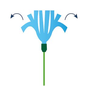 Vouw de papierstrookjes naar onder zodat er een volle bloem ontstaat. Je bloem is klaar, veel plezier ermee!