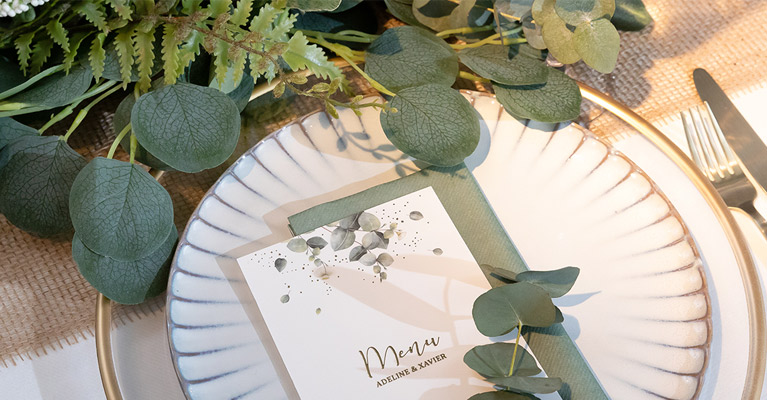 TIP: Kies een leuk ontwerp in het gamma van Mijn ontwerp en maak je uitnodigingen, naamkaartjes of menu's volledig zelf in de online editor. Zo sluiten ze mooi aan bij de stijl die je in gedachten hebt.