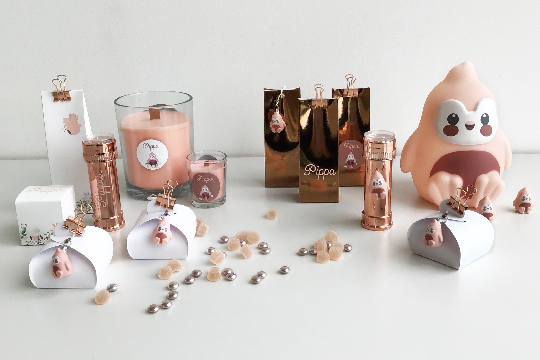 De hoofdkleuren van deze doopsuiker verpakkingen zijn roze en aluminium. Omdat de gasten graag kiezen werden drie verschillende verpakkingen samengesteld: