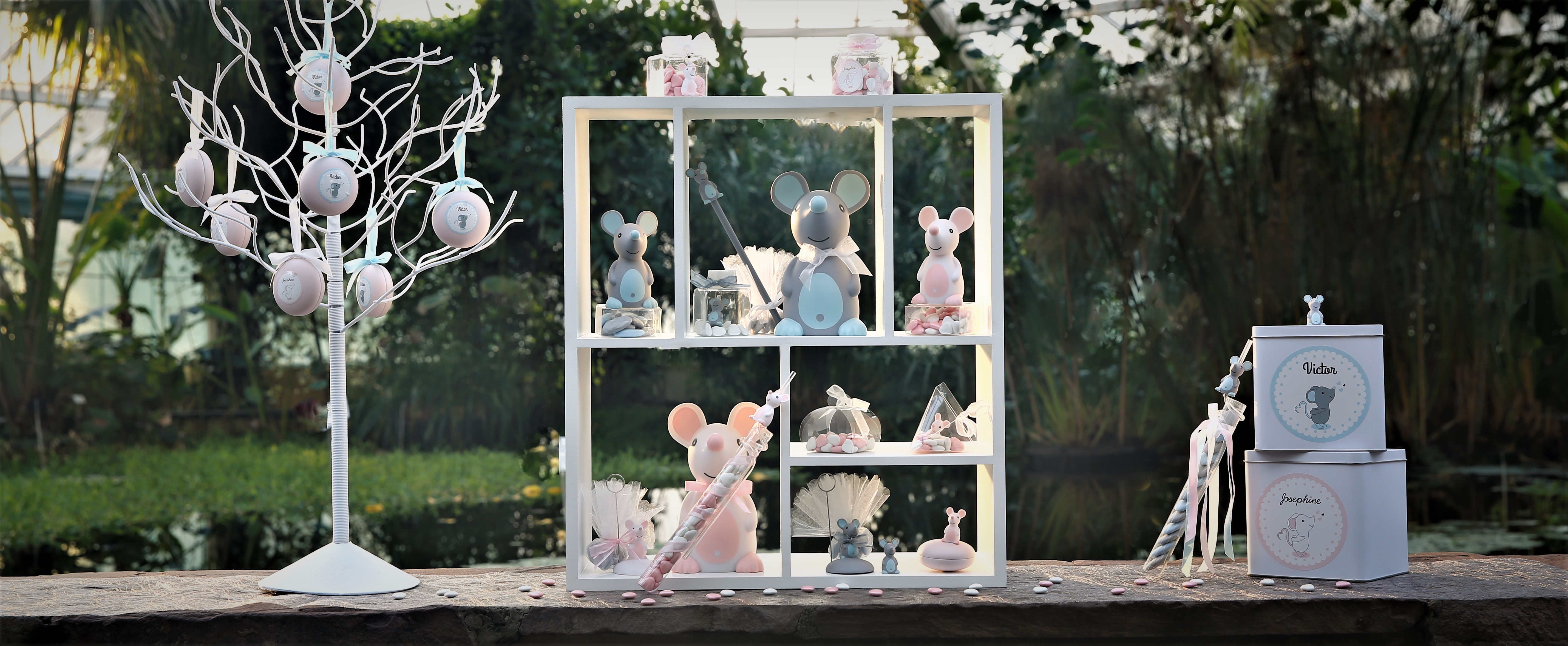 Piep zei de muis. In deze geboorte presentatie krijgen schattige muisje een centrale plaats. Hopelijk kunnen ze van de lekkere suikerbonen blijven.