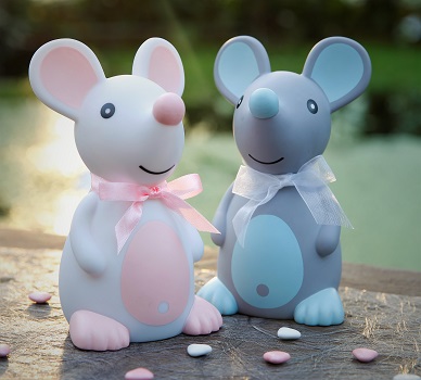 - De grote grijze muis is een spaarpot en de grote roze muis is dan weer een lampje met schakelaar