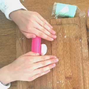 Snijd een stukje van de suikerpasta en rol de pasta uit met een deegrol.