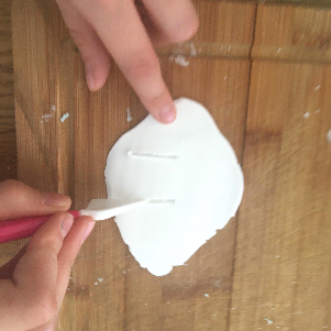 Geef vorm aan de suikerpasta met een uitsteekmesje.
